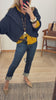 Thick knit sweater. Boat neck. 3/4 sleeves. Asymmetrical front. Oversized.