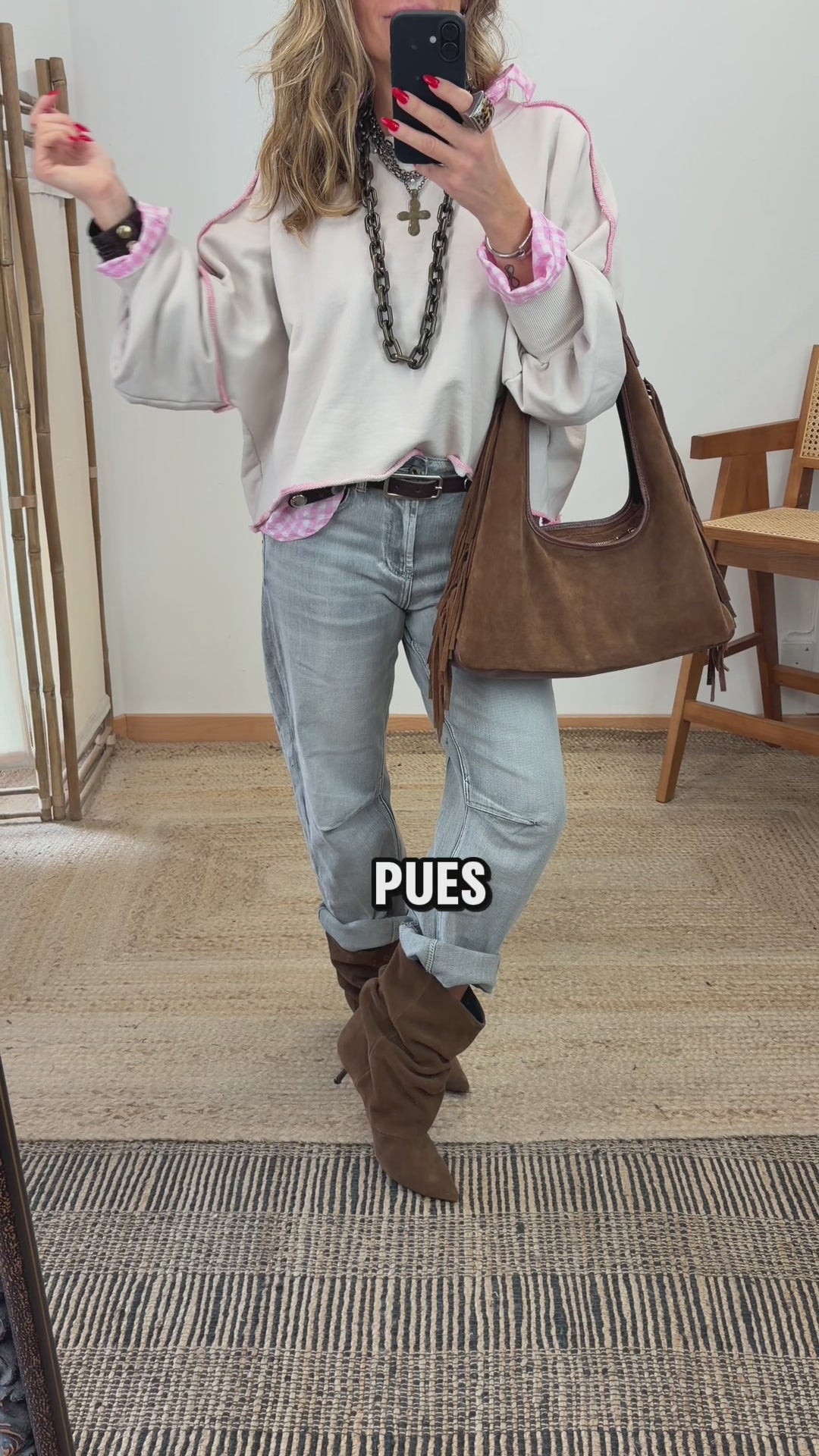 Crop top sweatshirt. Round neck. Long sleeves with elastic cuffs. Contrasting blue trim. Oversized.