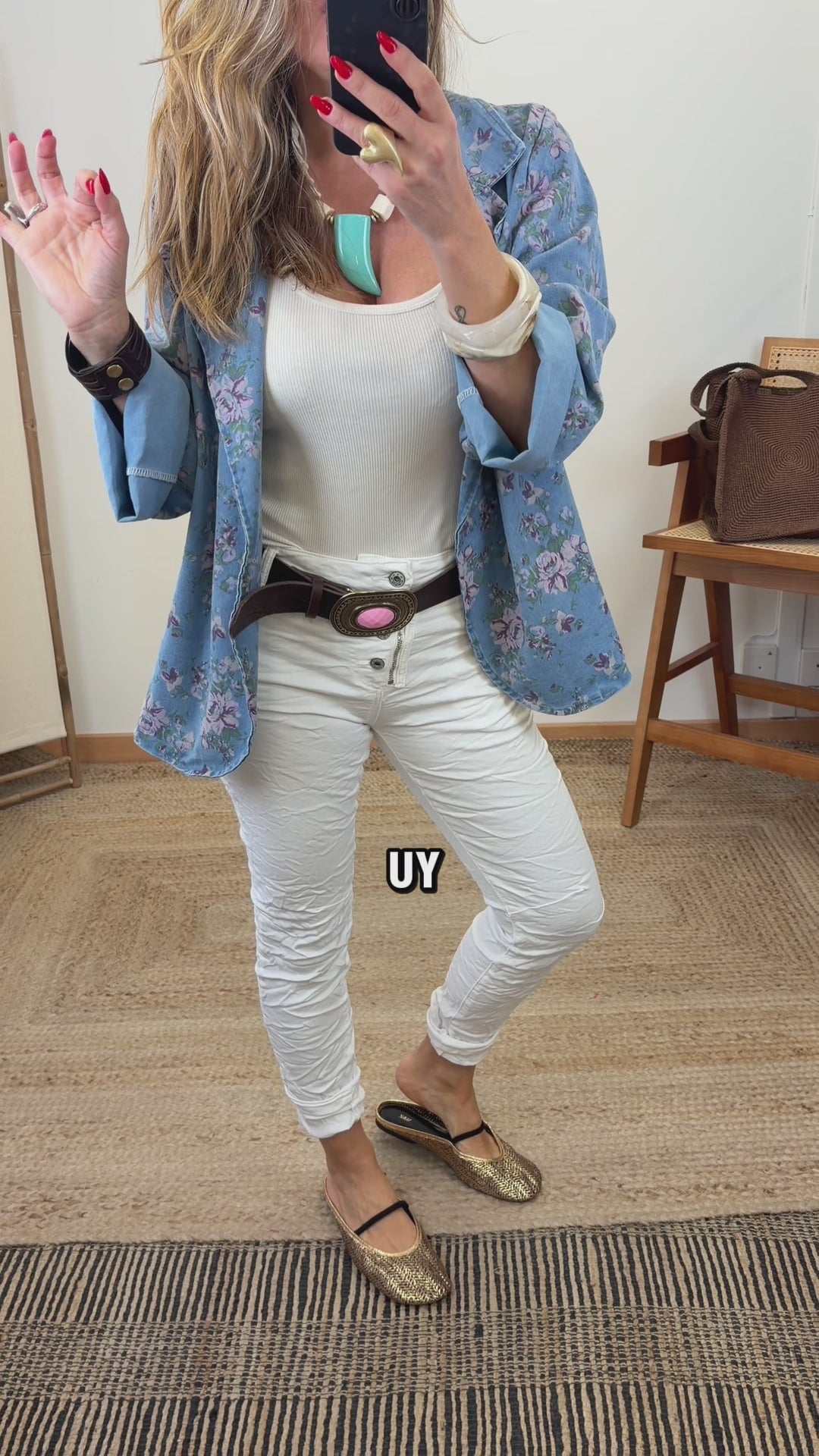 Cotton blazer. Lapel collar. Button closure. Long sleeves. Contrasting floral print detail. Oversized.