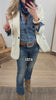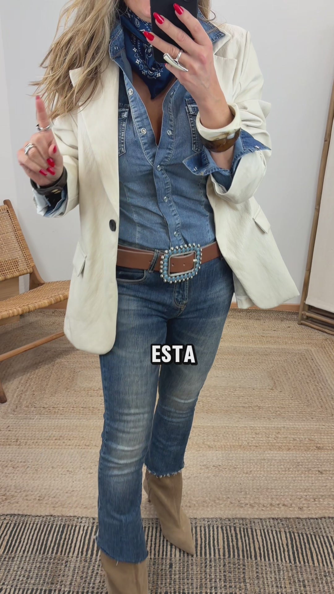 Cotton denim shirt. Shirt collar. Long sleeves with cuffs. Button closure. Front pockets. Stretch fabric.