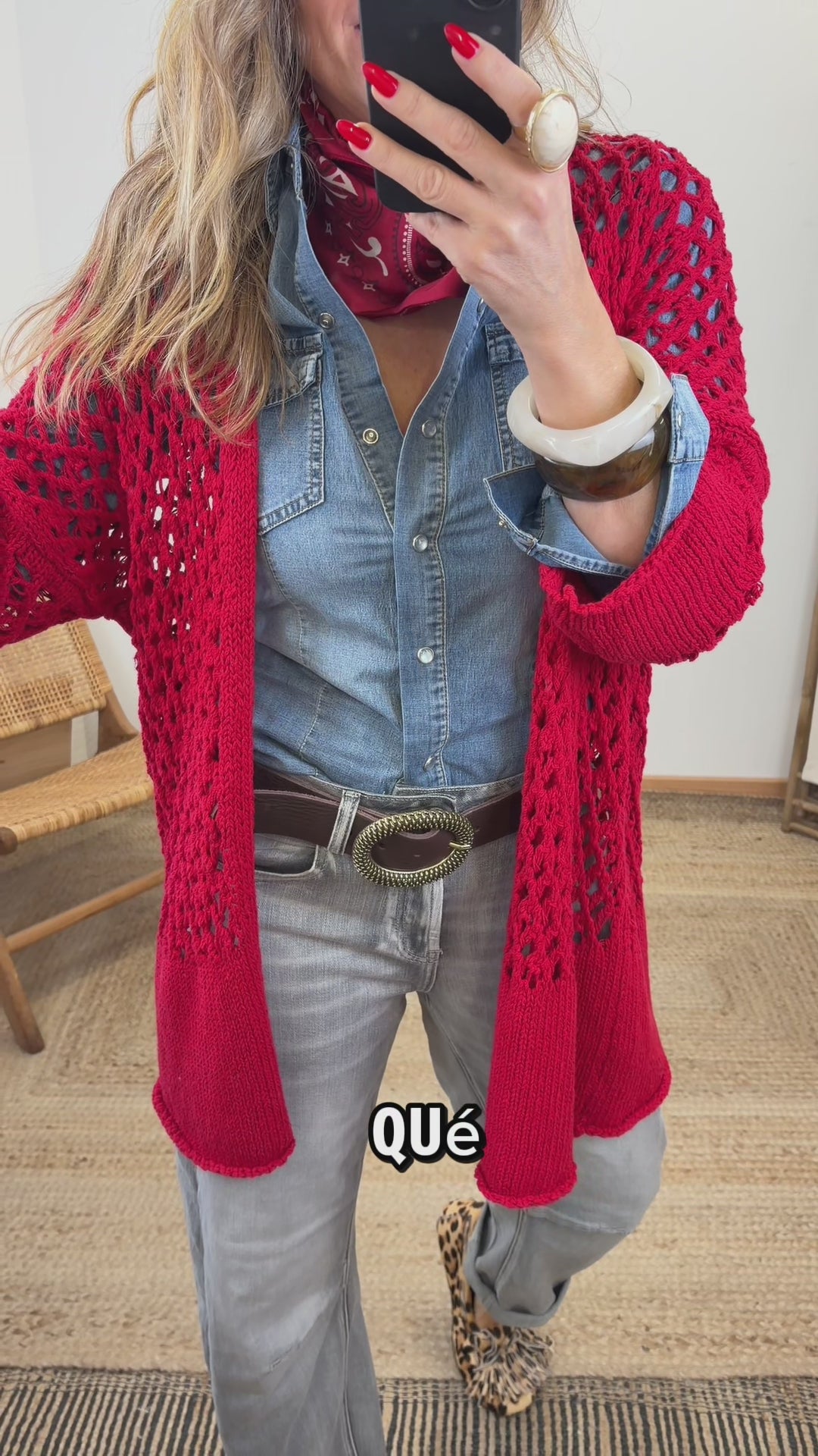 Maxi cardigan in medium knit. Open style. Long sleeves. Openwork knit detail. Oversized.
