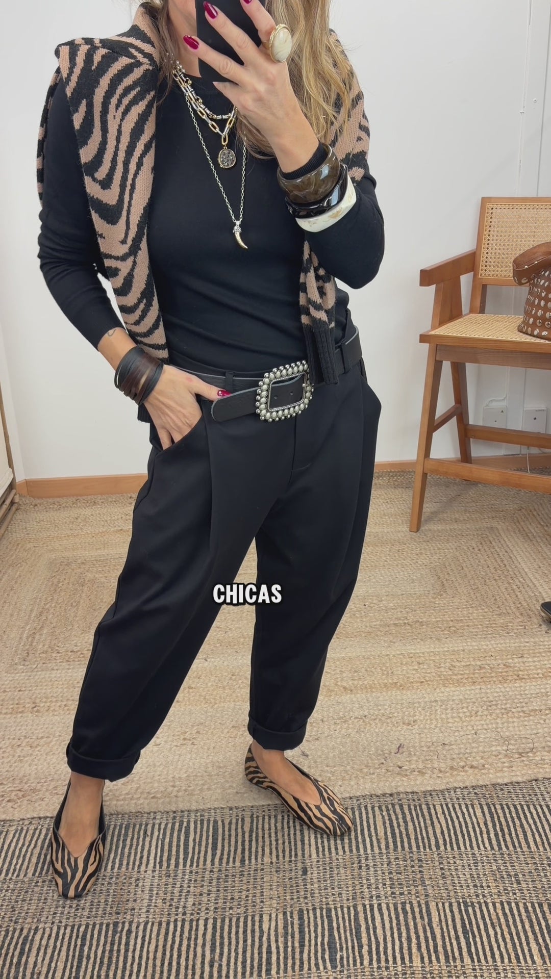Knitted sweater. Round neck. Long sleeves. Elasticated hem.