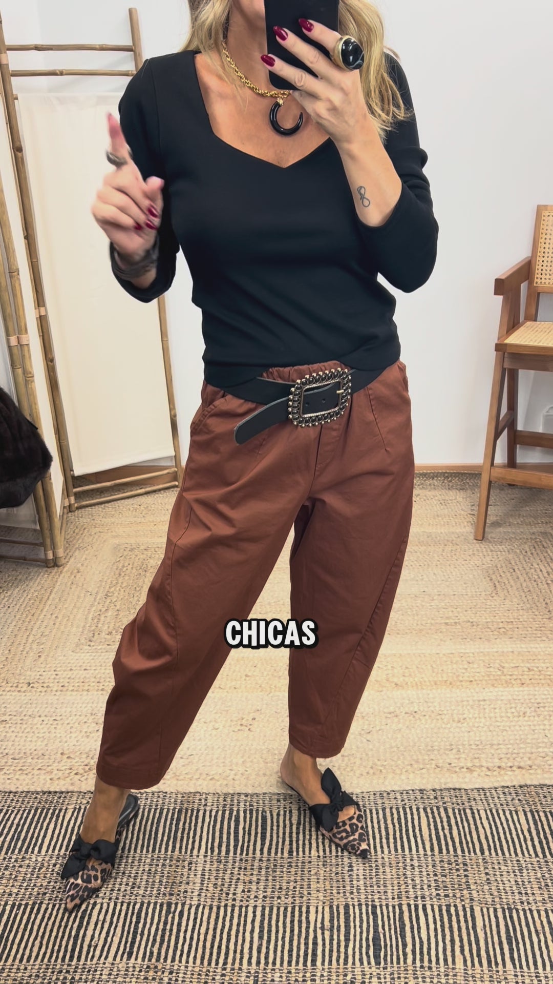Cotton barrel pants. Elastic waistband. High rise. Side pockets.
