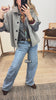 Cotton jeans. Mid-rise. Straight leg. Zipper closure. Frayed hem. Stretch fabric.