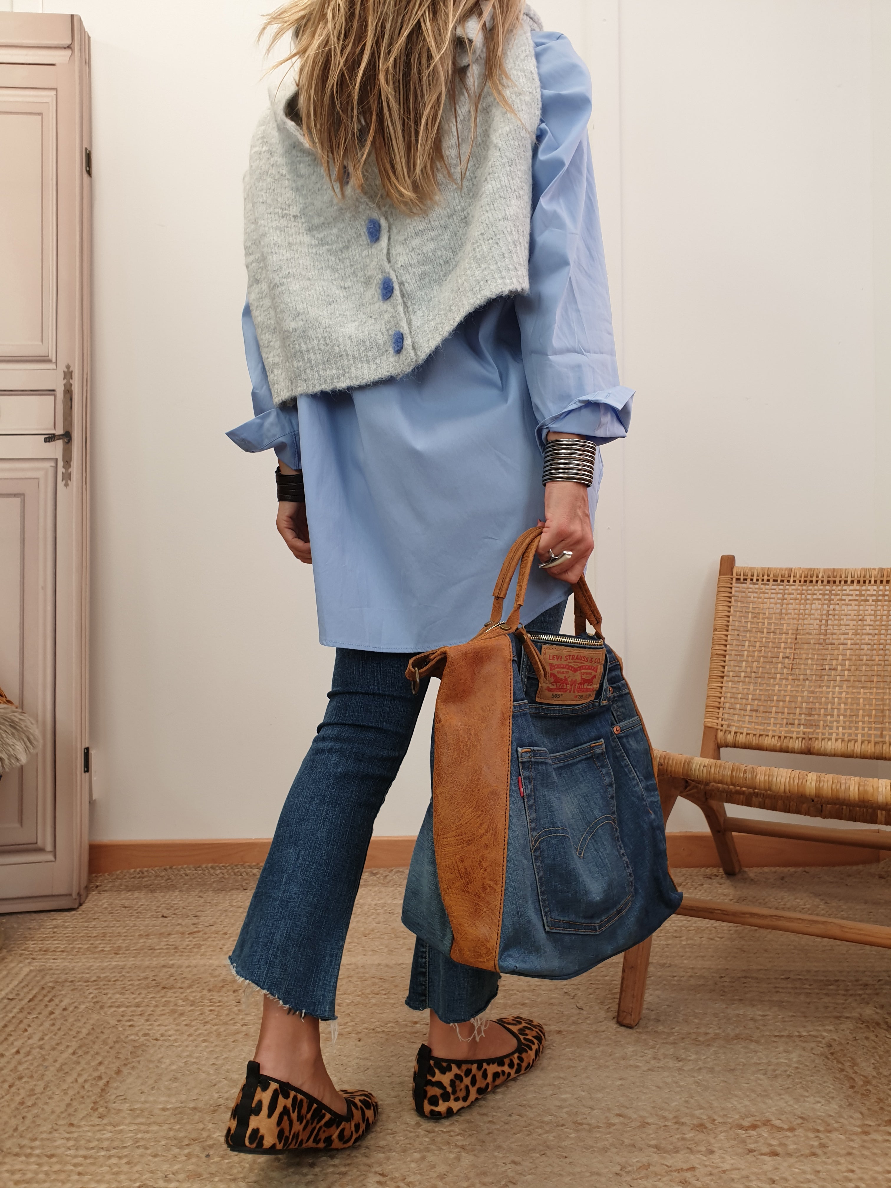 Chemise basique en coton. Col chemise. Devant avec boutons. Manches longues avec poignets à boutons. Longueur asymétrique. Oversize.