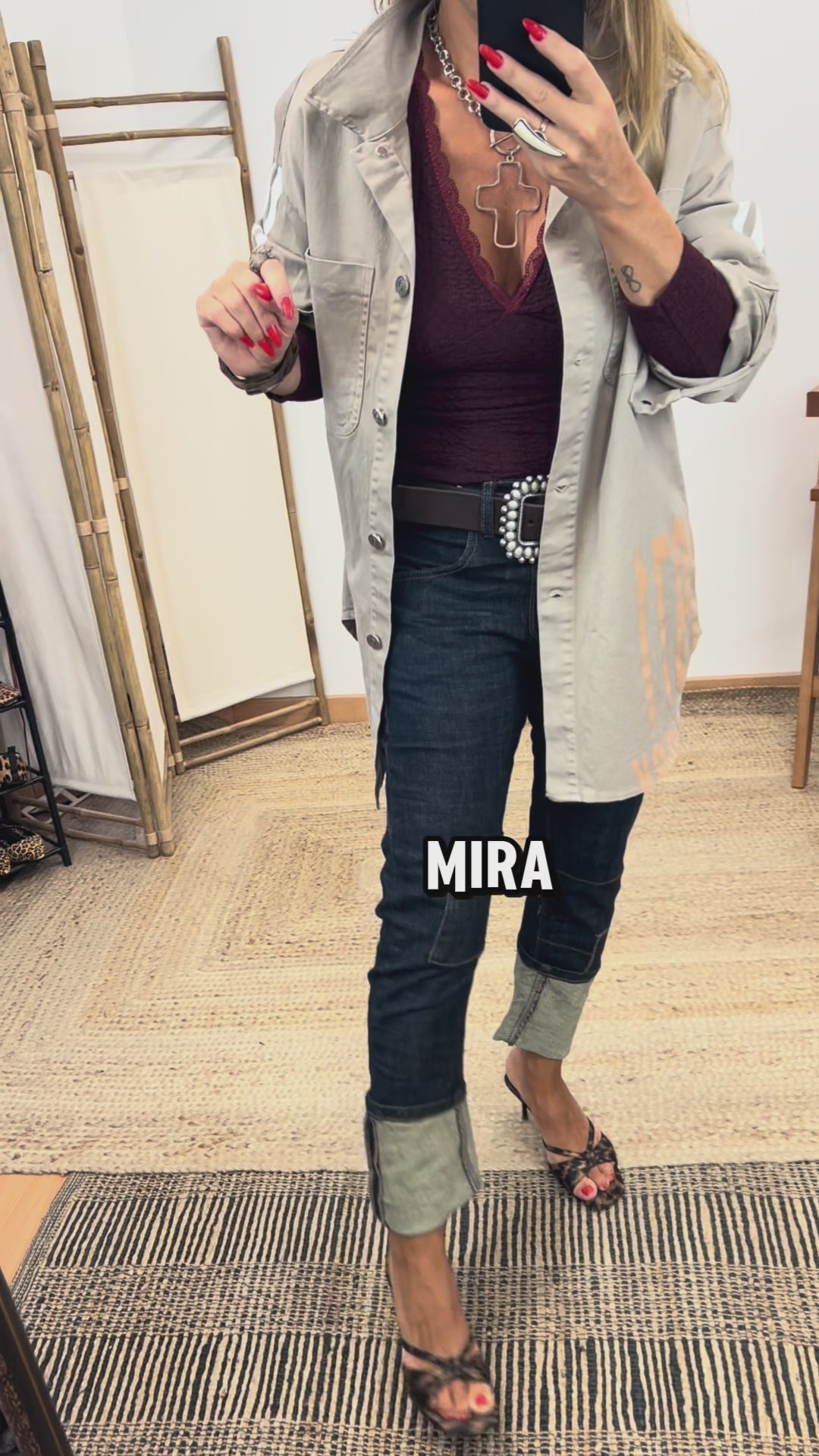 Surchemise en coton. Col chemise. Manches longues avec poignets. Fermeture à boutons. Poches plaquées sur le devant. Motif contrastant dans le dos. Coupe oversize.