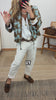 Chaqueta bomber con lino. Cuello redondo. Manga larga con puño. Cierre con cremallera. Bolsillos plastón en frontal. Estampado en contraste. Bajo con cordón ajustable.