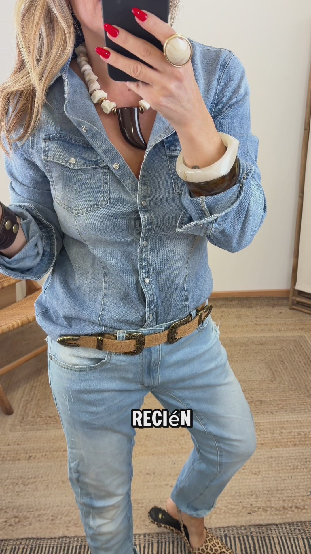 Camisa tejana de algodón. Cuello camisero. Manga larga con puño. Cierre con botones. Frontal con bolsillos. Tejido elástico.