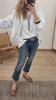 Camiseta de algodón. Cuello redondo. Manga larga con puño y tejido de camisa. Detalle abertura con puntilla en parte trasera. Oversize.