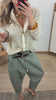 Cárdigan de algodón Cuello redondo rizado. Manga larga. Frontal con botones con volante. Estampado animal print en contraste de color azul marino.