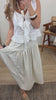 Falda larga de algodón. Cintura elástica. Franjas en contraste de color beige. Corte evasé.