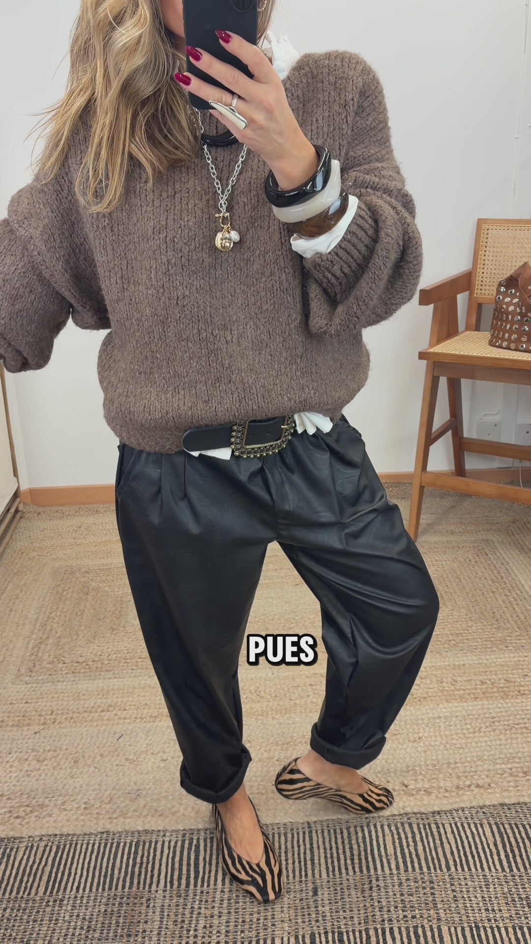 Jersey de punto grueso. Cuello pico. Manga larga murciélago con puño. Detalle nudo en frontal. Tejido suave.