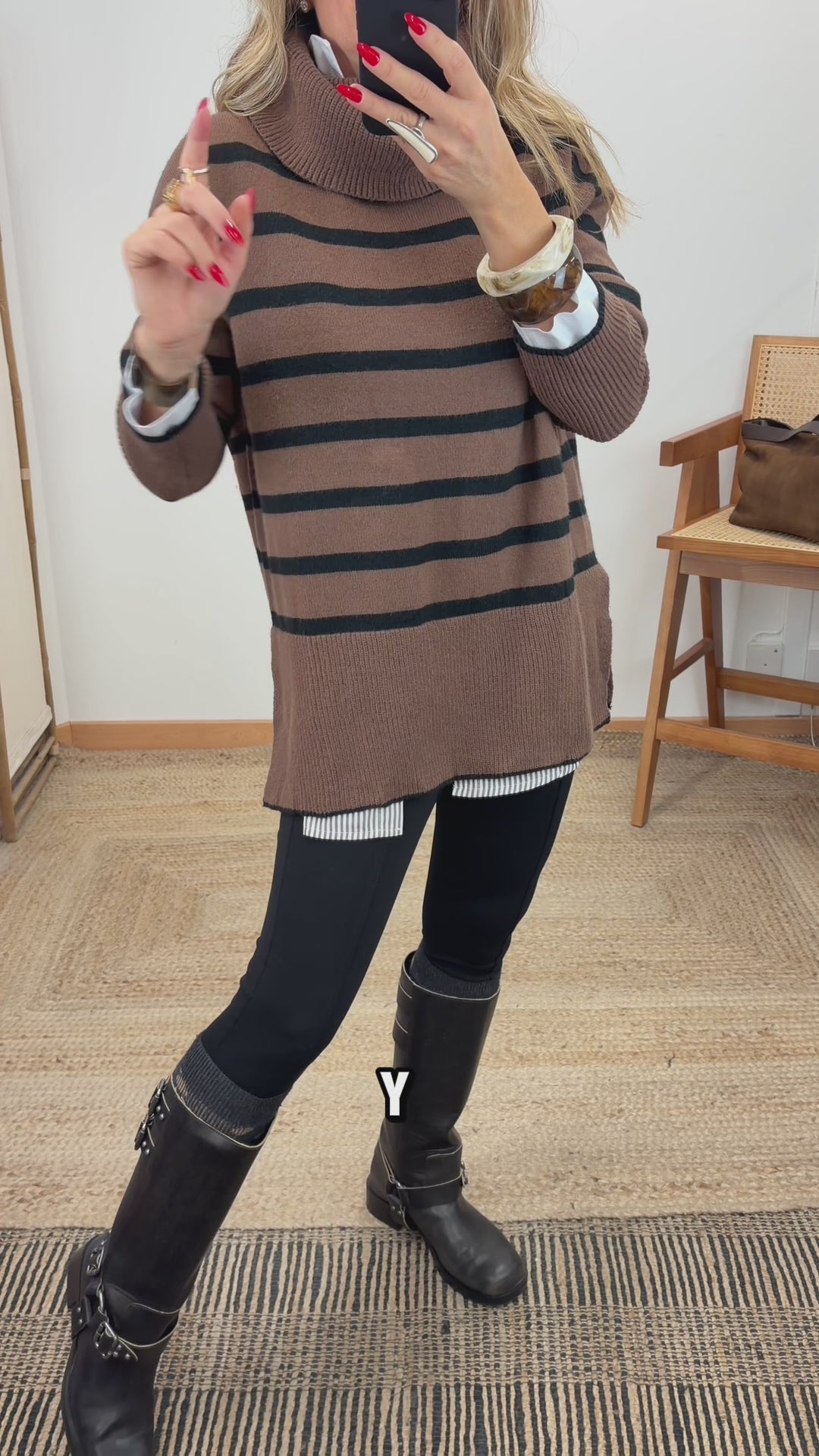 Jersey de punto grueso. Cuello alto. Manga larga con puño. Bajo con maxi elástico y aberturas en lateral. Franjas en contraste de color negro. Oversize.
