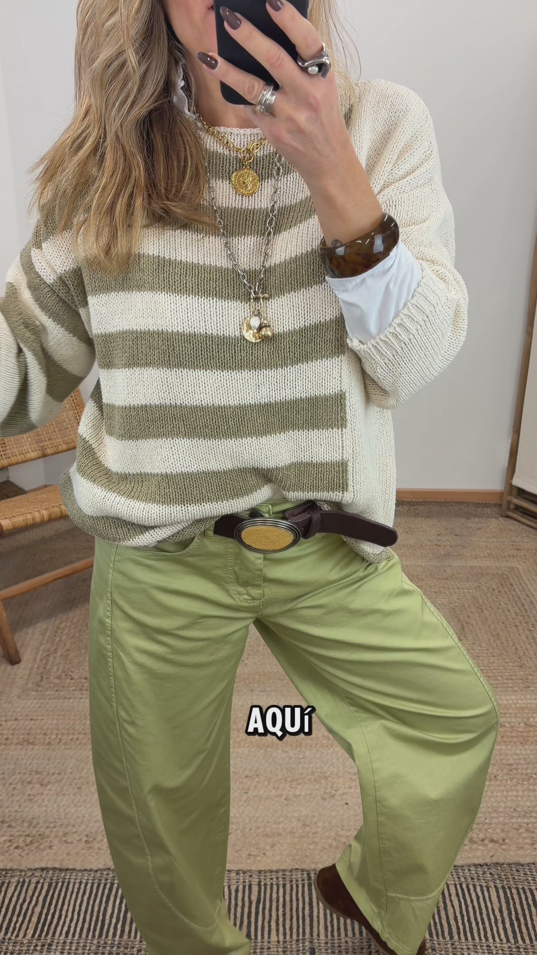 Jersey de algodón. Cuello redondo. Manga larga. Detalle franjas verdes en contraste. Oversize.