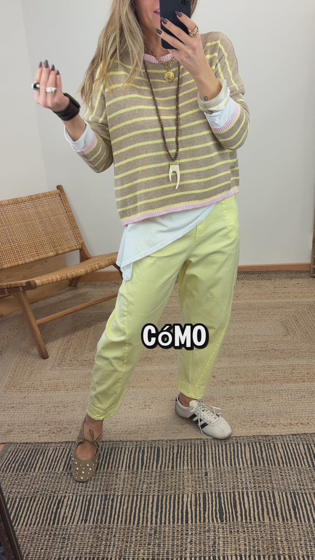 Jersey de cuello redondo. Manga larga. Cuello, bajo y puño en contraste de color. Oversize.