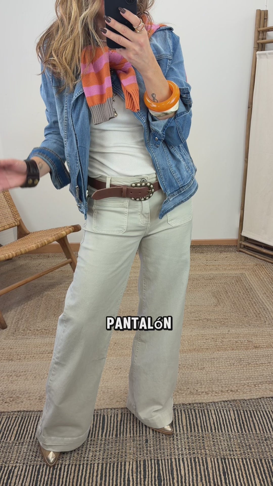 Pantalón de algodón. Tiro medio. Corte wide leg. Cierre con botón. Detalle bolsillos plastón en frontal. Tejido muy elástico.
