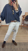 Sudadera crop top. Cuello redondo. Manga larga con puño elástico. Ribetes en contraste en color azul. Oversize.