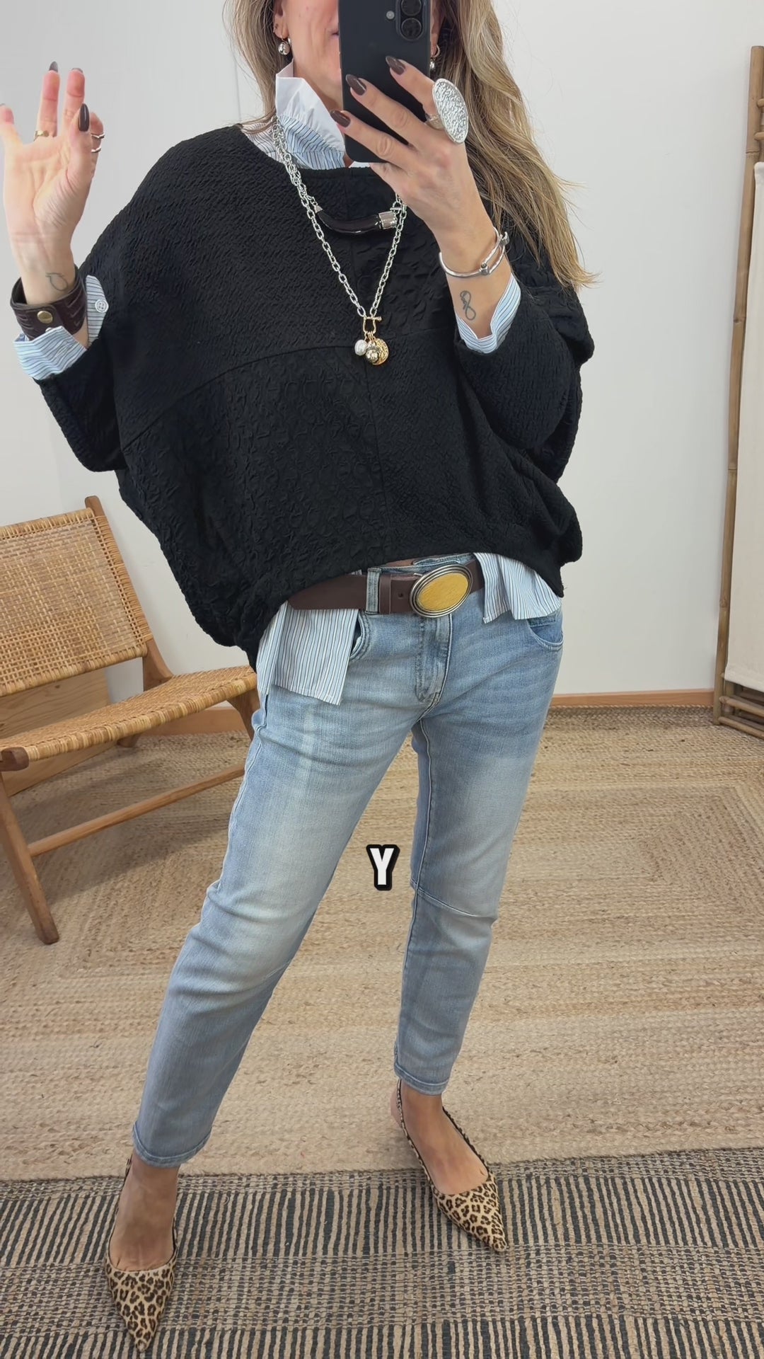 Maxi sudadera de viscosa. Cuello redondo. Manga larga. Motivo en relieve. Crop top. Oversize.