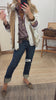 Casaco de malha grossa. Gola em V. Manga comprida. Frente com botões. Elástico na bainha. Oversize.
