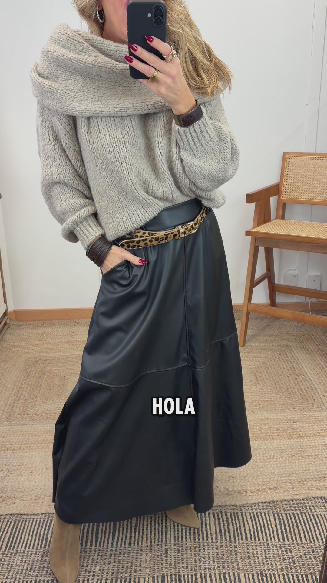 Camisola de malha grossa. Gola maxi. Manga comprida com punho. Bainha com elástico.